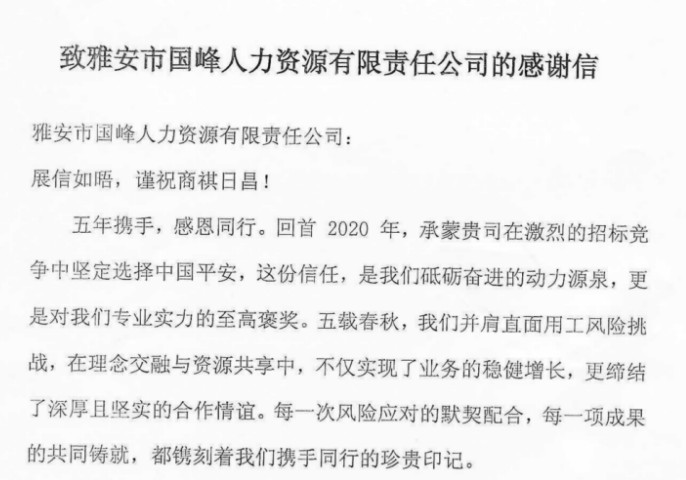 企業名稱變更提示:原雅安市勞務有限責任公司于2024年11月公司名稱變更為雅安市國峰人力資源有限責任公司,請知悉。